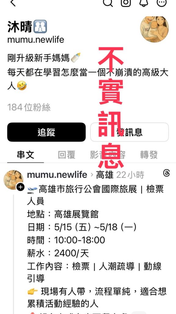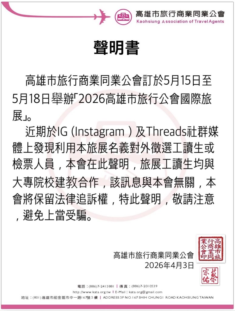 本會未曾於社群軟體刊登徵選旅展工讀生-聲明書