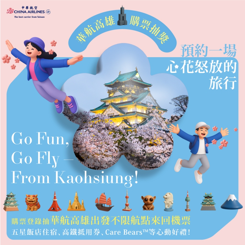 🌸從高雄出發,展開屬於你的「花花世界之旅」! 購票登錄就有機會抽中「華航高出不限航點來回機票、五星飯店住宿、高鐵抵用券、Care Bears」 等豐富好禮